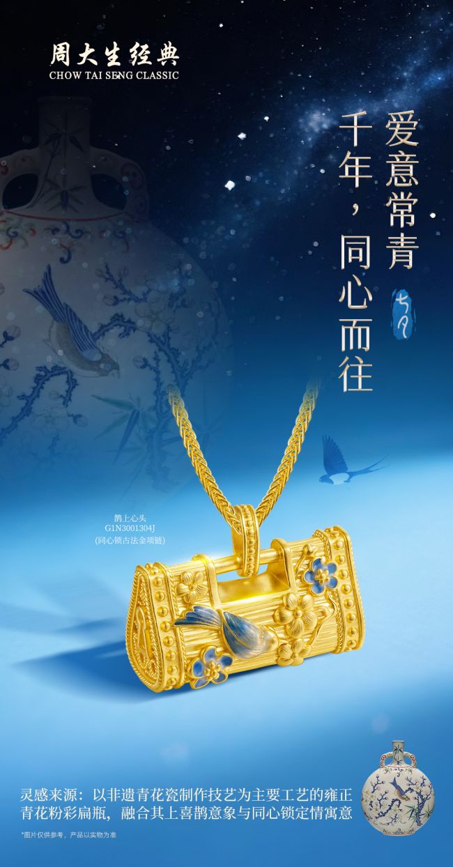 从青花的素雅、喜鹊的喜韵、到蝴蝶的灵动,每一件作品都既是工艺与艺术的融合,也是文化与情感的载体。周大生经典溯源东方致敬非遗文化,将非遗技艺中的美学基因转化为可触摸、可佩戴的珠宝语言。它们打破了古典与现代的壁垒,无论是追求生活格调的自我表达,还是传递真挚情感的心意馈赠,周大生经典都能以东方雅韵,见证每一个值得铭记的美好时刻。